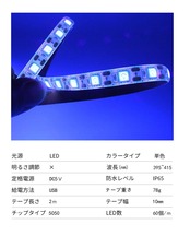 【仕様】電源:DC5V 給電式:USB 長さ: 2メートル 波長: 395 – 400 nm 両面粘着テープ付き